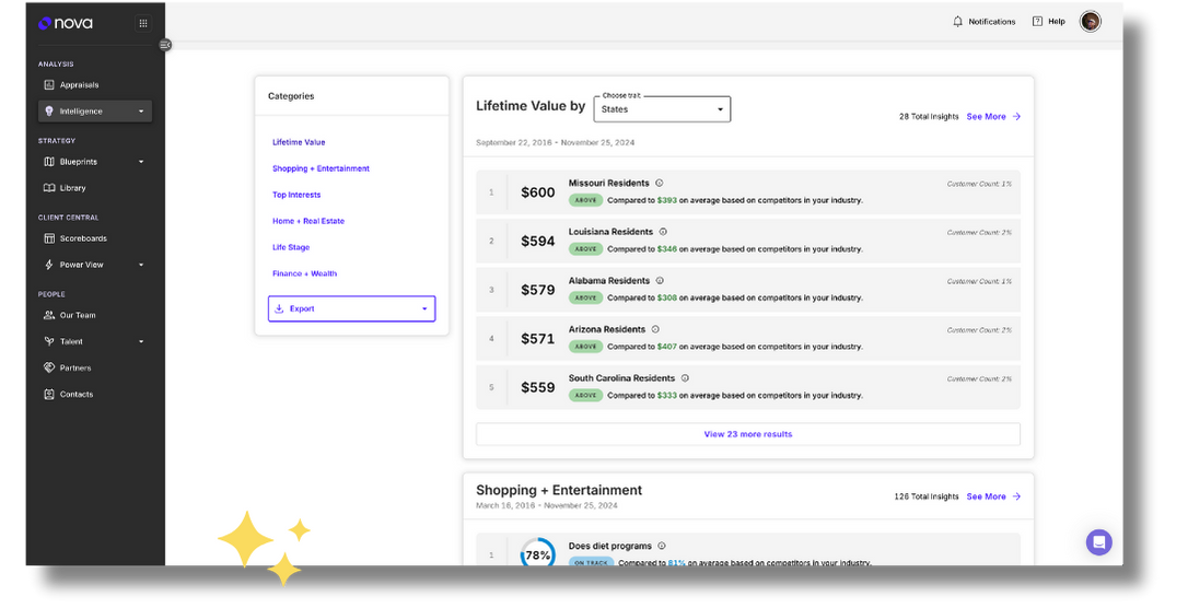 nova Customer Insights delivers a complete understanding of your audience, leveraging data to build detailed personas and uncover trends. By identifying customer preferences, businesses can refine their marketing strategies and maximize engagement.