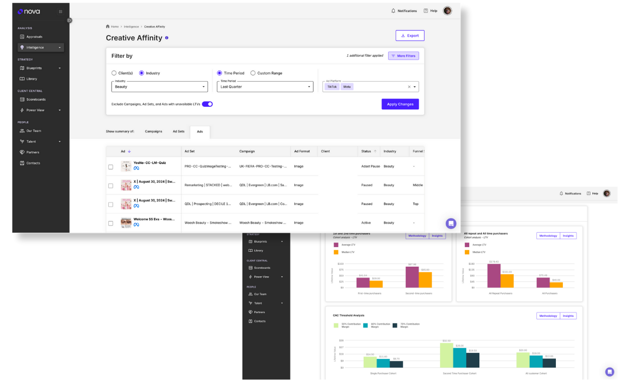 nova Creative Affinity revolutionizes performance marketing by linking advertising creatives to customer Lifetime Value (LTV). This application helps businesses optimize ad content and allocate budgets effectively by identifying high-performing creatives.